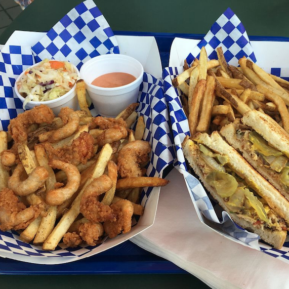 Make that a triple yay! Sea Rager offers mock meats like vegan fish and chips, shrimp, tuna, etc., not to mention tacos, sandwiches, patty melts, and burgers. All shakes, root beer, and coke floats are also vegan.