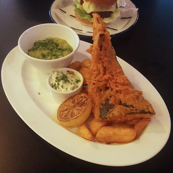 Note: This is the only spot on this list that is not 100% vegan. However they have an extensive, separate vegan menu that was launched in November 2018. The menu includes vegan versions of fish, crab cakes, calamari, scampi, prawns, fish fingers, sausages, haggis, and much more.