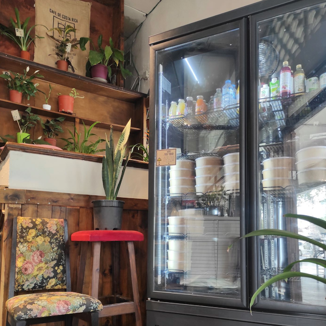 A vegan cafe that’s also a zero waste store. A warm, inviting, cozy spot for anyone who is a coffee-lover with a sweet tooth!