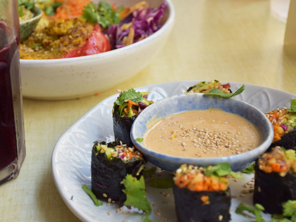 Our favorite dishes: the raw rolls with peanut and coconut sauce. A delight!