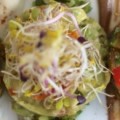 This small café has a whole lot going for it even besides the vegan options. Connected to Hubud, the town’s most popular co-working space, the vibe at LFL is quiet and entrepreneurial. Seats are mostly taken up by digital nomads, making a living from their laptops. While they offer up sandwiches, a Mediterranean plate and “lasagna,” the best part is their fridge filled with raw desserts. The Key lime pie and vanilla infused coconut water are some of my favorite things to have there. Another perk–it overlooks the rice fields and is connected to a communal “yard” for lounging.