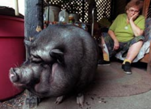 4. Lulu the pig heard a woman (Jo Ann) fall inside the house. When Lulu found JoAnn suffering on the floor, she squeezed herself through the dog door that scraped her skin and made her bloody. Once outside, Lulu opened a gate and laid down on the edge of the highway. Several cars drove around her. Unwilling to give up, she tried again in the middle of the highway. Finally a man stopped and got out of his car to make sure Lulu was ok. When he did, she sprang up and ran to the house with him following. He dialed 911 and Jo Ann lived.