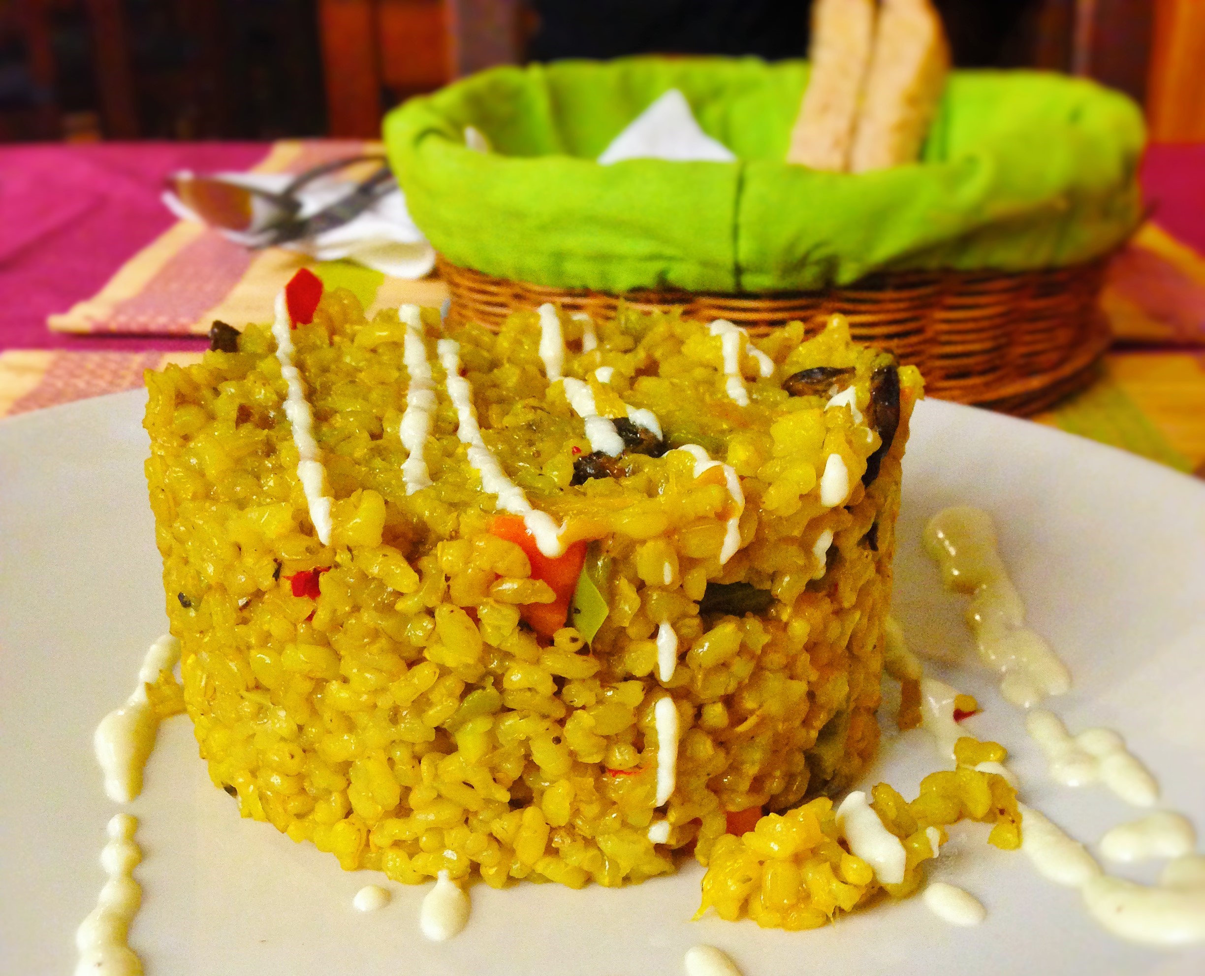 Luckily I visited the restaurant on Paella day and was able to negate the feeling that I was missing out on not having one of southern Spain most well known dishes due to my diet. Their vegan Paella consisted of saffron infused rice with mushrooms, carrots, bell pepper and onions, drizzled with a creamy white sauce. It was fresh, well seasoned, filling, and satiated my craving for this Spanish specialty.