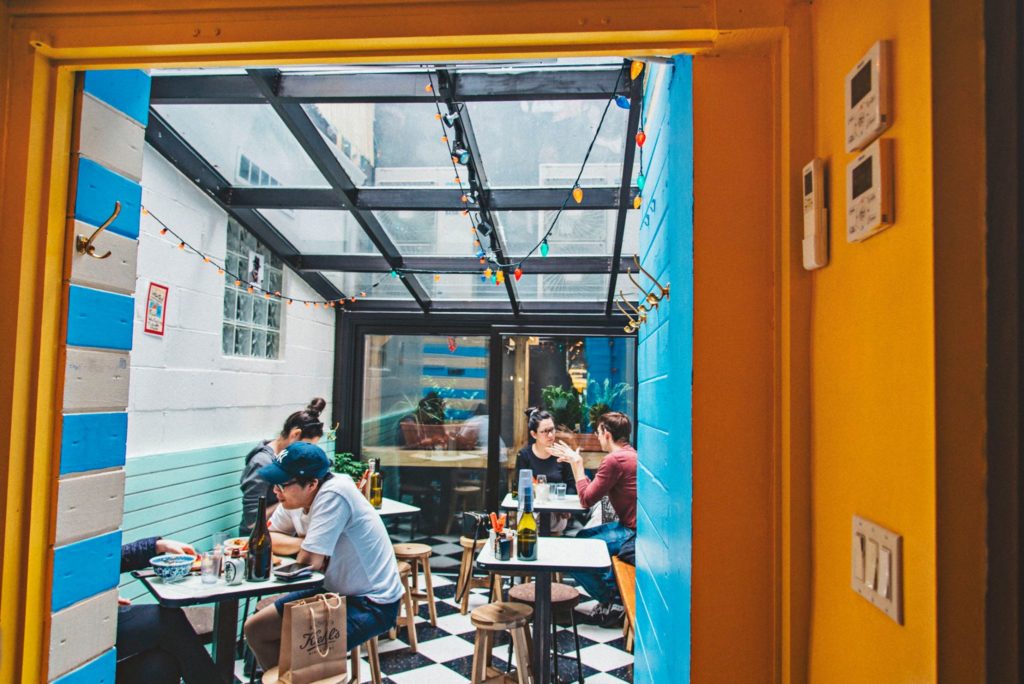 The menu also encourages DIY meal-building, allowing guests to design their own hot or cold entree from the many bases, spreads and toppings available. Meals are ordered at the front counter, where appetizers and entrees are displayed and assembled. They can be enjoyed in-house in eclectic Japanese bowls (I loved those beautifully colored bowls) or taken to-go in recycled, sustainable packaging. A selection of natural wines are also on offer.
