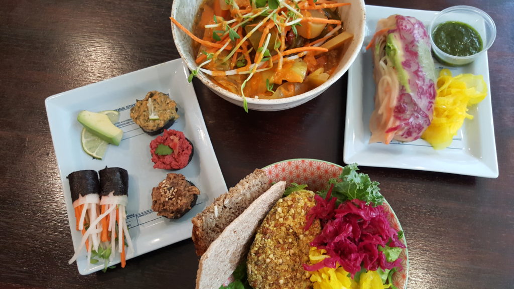The menu is 100% organic and entirely botanical, which means there are no animal products used on-site. The seasonally changing menu features chef-designed prescriptions such as the Tibetan Mama: a savory combination of brown rice, peanut curry sauce, steamed greens and spicy kimchi, and the Dirty Noodle Soup: with velvety tofu, steamed leeks, garlic and spicy ginger. Hearty specialty soups and fresh juices rotate daily.