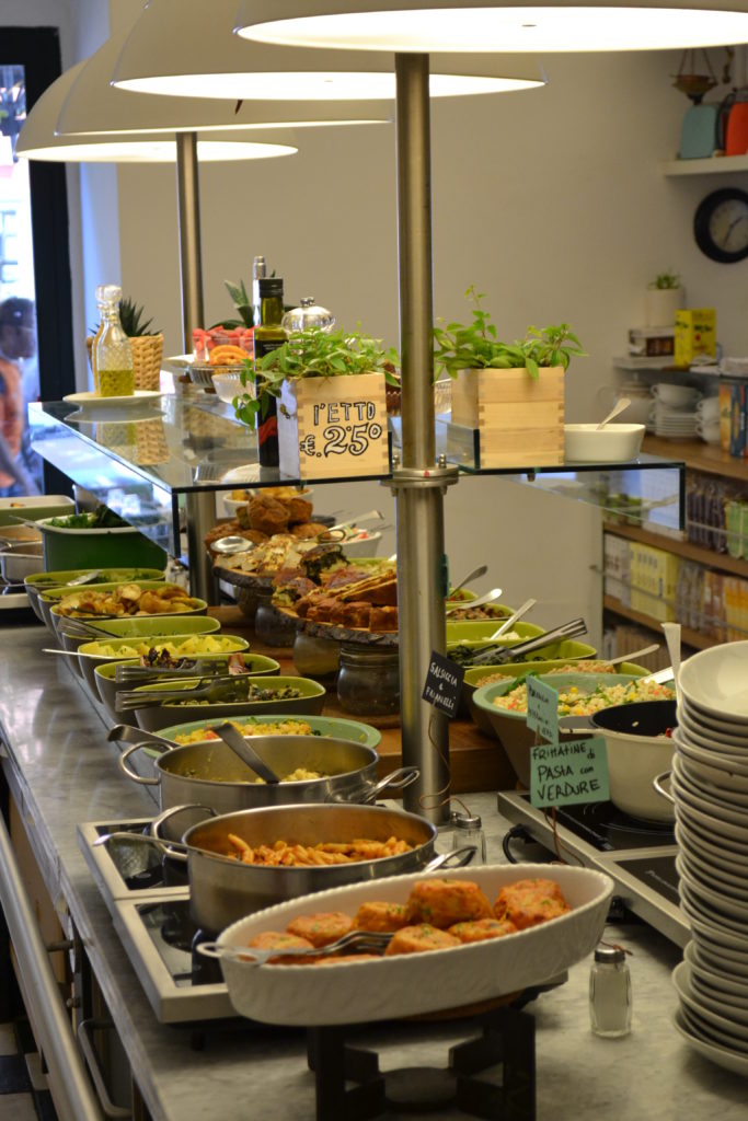 L’Etto has a crisp, modern looking feel to it and we just loved the buffet. 80% is vegetarian/vegan, there is a large variety of veggie dishes, great salads, (wild) rice and pastas. Good wines by the glass – both local and more well known (Montepulciano and Tuscany) plus some local craft beers.