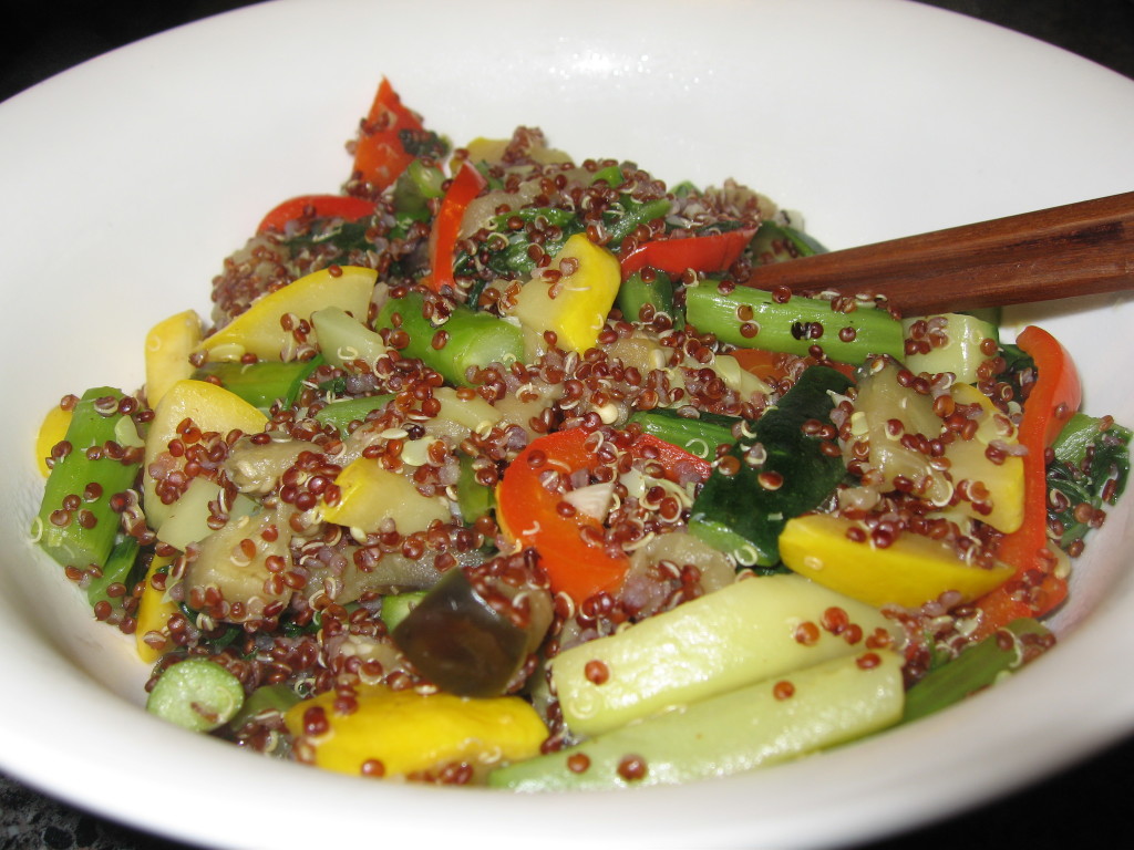 June 4, 2012 at 10:20 amFrom time to time, I’ll make a quinoa + veggies pilaf at home, sometimes with regular quinoa, sometimes with red quinoa. Both are yummy with veggies.