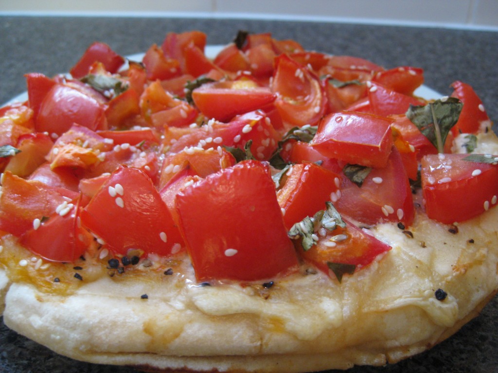 Spread tomato mix onto the pizza