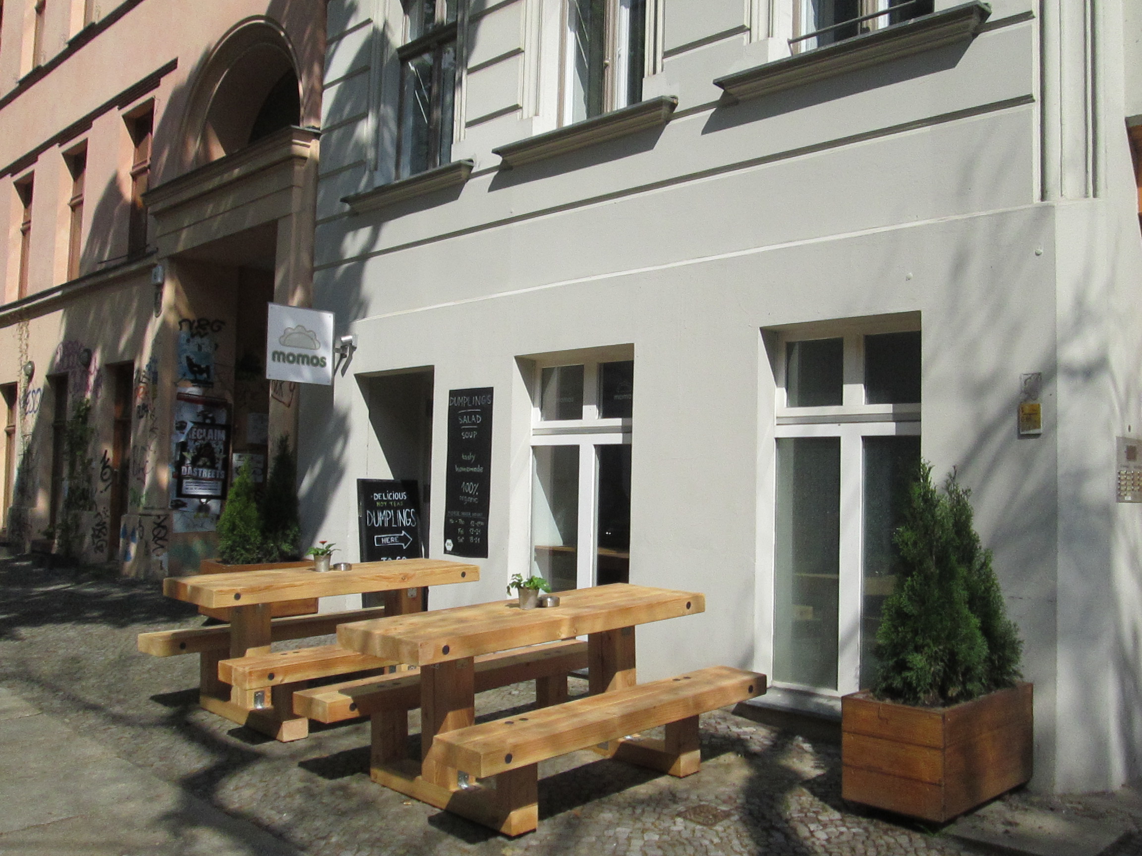 Inspired by the Asian fusion food which is so popular in the UK and Australia, they decided to travel to Asia to be inspired further and come up with the concept for their restaurant. They took the rich, spicy flavours found in Nepalese steamed dumplings (momos) – adapting the recipe a little for European taste buds – and came up with more vegetarian and vegan fillings, something which they feel is unique in Berlin. The result resembles a Polish dumpling (pierogi) but packs a punch in terms of flavour. You can choose to either have your momos steamed (the traditional way) or fried, both of which are delicious.
