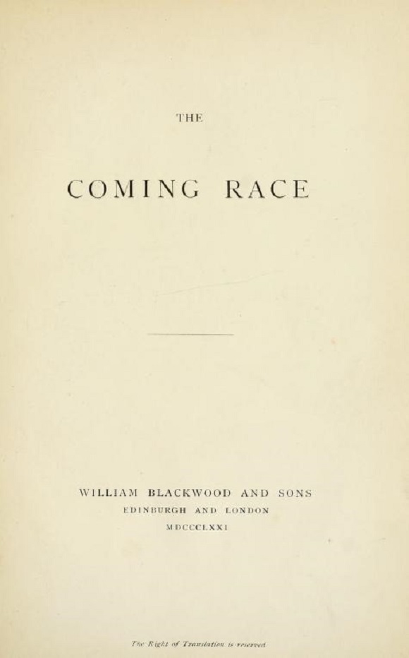 2) A copy of Lytton’s 1871 novel, The Coming Race – read it in full – here.