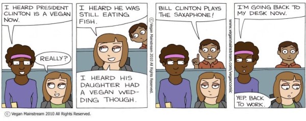 September 29, 2010 at 7:52 pmSo funny cartoon! Bill Clinton’s coming out definitely gave support and helps building up credibility for vegetarians and vegans. Laurence, ConnectionZen.com
