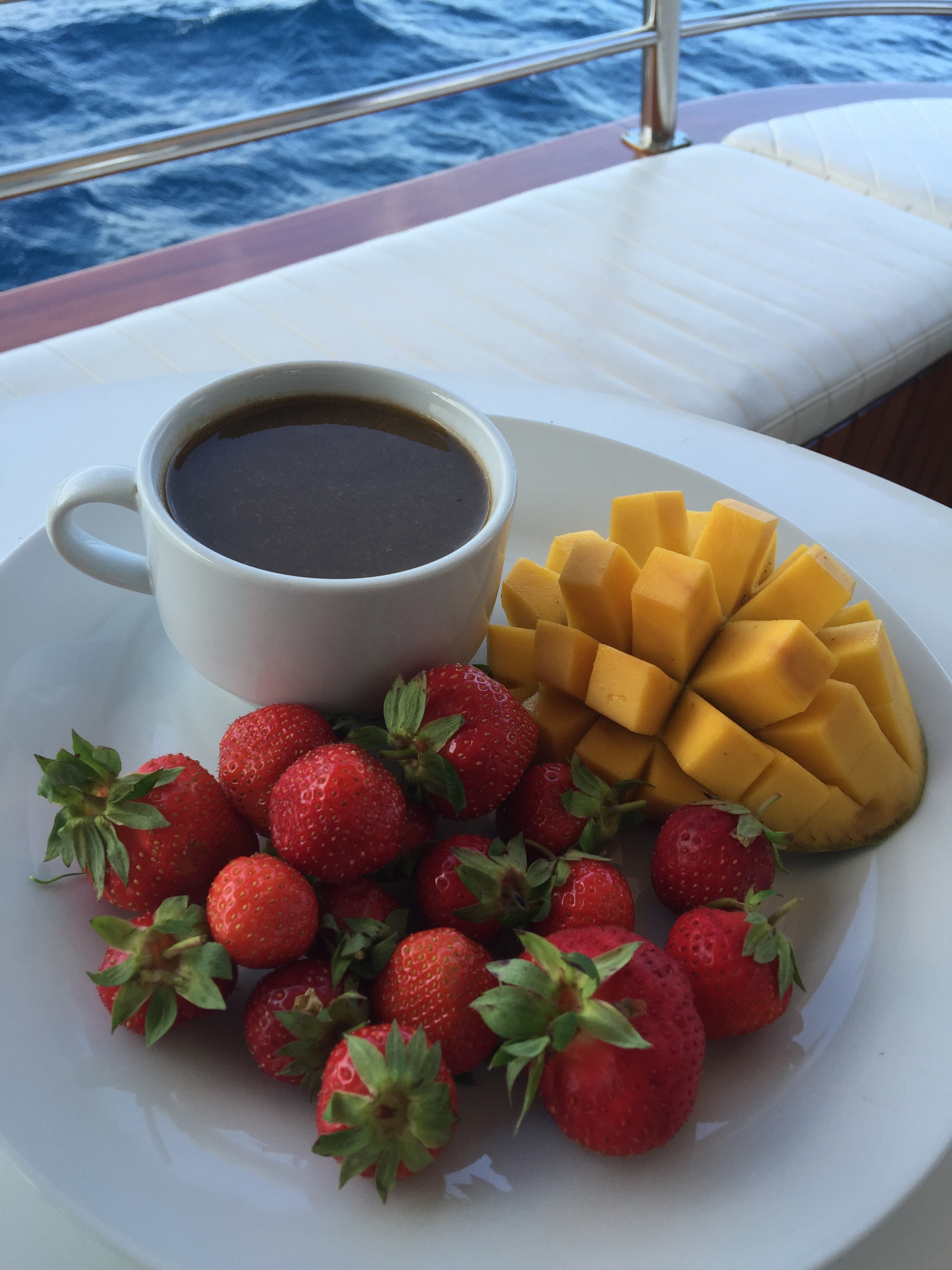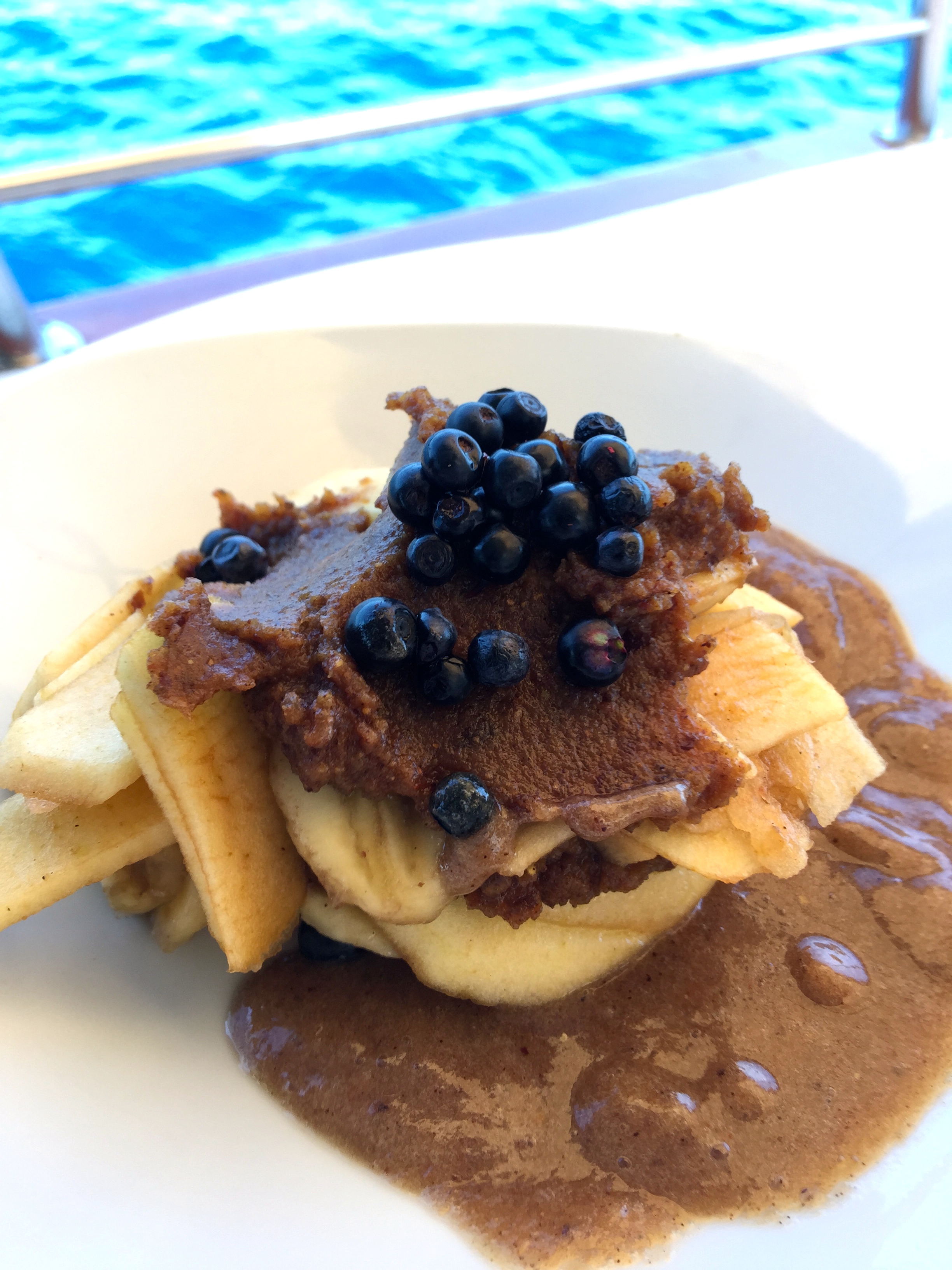 Most of the produce we enjoyed on board was local and organic. All the meals were fully raw. We typically had fresh juices (green, carrot, beet, watermelon etc.…) and smoothie bowls in the morning.