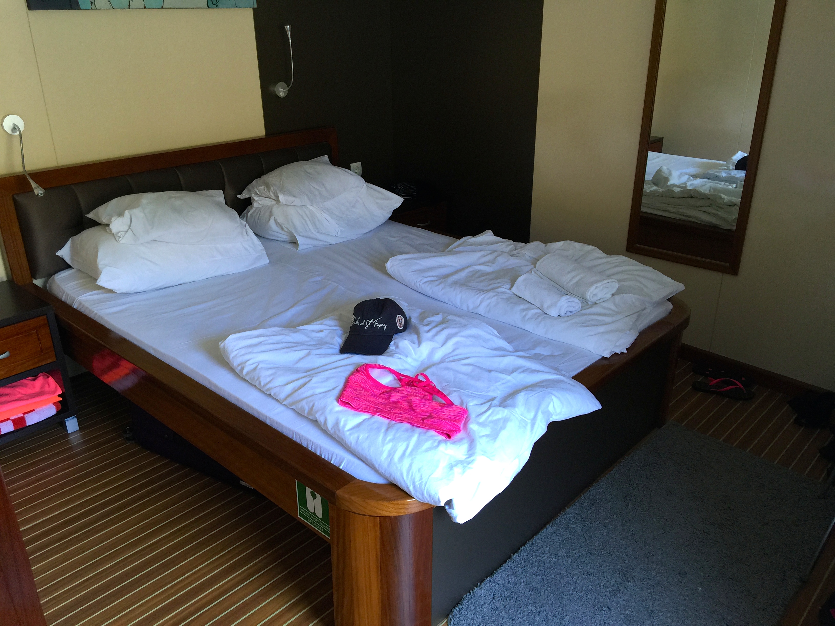Our cabin on the main deck was absolutely spotless and spacious. It had an excellent layout, with a very comfortable bed (can be converted into a double or twins), a decent size ensuite full bathroom (plenty of hot water!), a small desk and a closet.