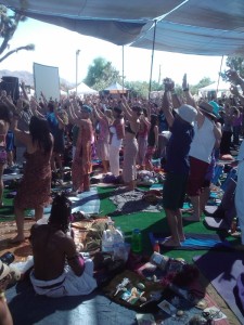 Held in Joshua Tree, California, all vegetarian, this four day event with non-stop music, offers an incredible assortment of yoga, bodywork practitioners/ healers, vendors (nutritional supplement companies), and excellent raw and vegan cleansing foods. Unlike most music festivals, this one was mainly comprised of Kirtan music, which requires the audience to also sing, back and forth with the musicians, rather than take a passive role. “Kirtan” is a Sanskrit word which means “to repeat” or call-and-response chanting, is common in India’s devotional traditions, though most religions have also something similar. One of the big name performers, Krishna Das, gave an example of that when he sang the gospel classic, “Jesus on the Main Line.”. With two stages, this included over 80 hours of music by notable kirtan performers.