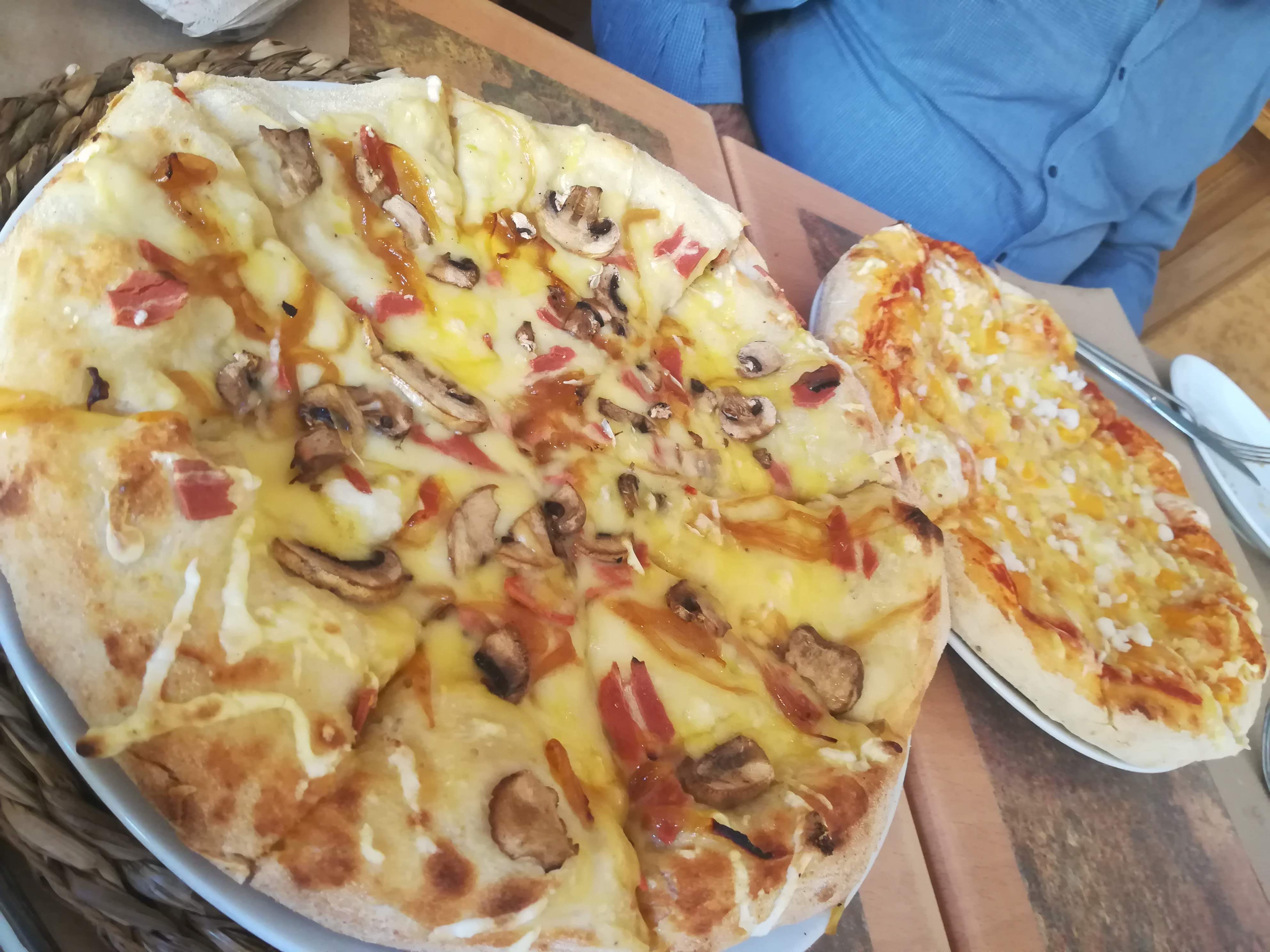 Our main dishes were: two pizzas (4 cheese and carbonara), and a typical Spanish paella (olé! ). Again, all the dishes were tasty, but we really liked the carbonara pizza, and the paella was sublime as well. I recommend ordering one paella for 2-3 people along with one or two appetizers to get a full lunch.
