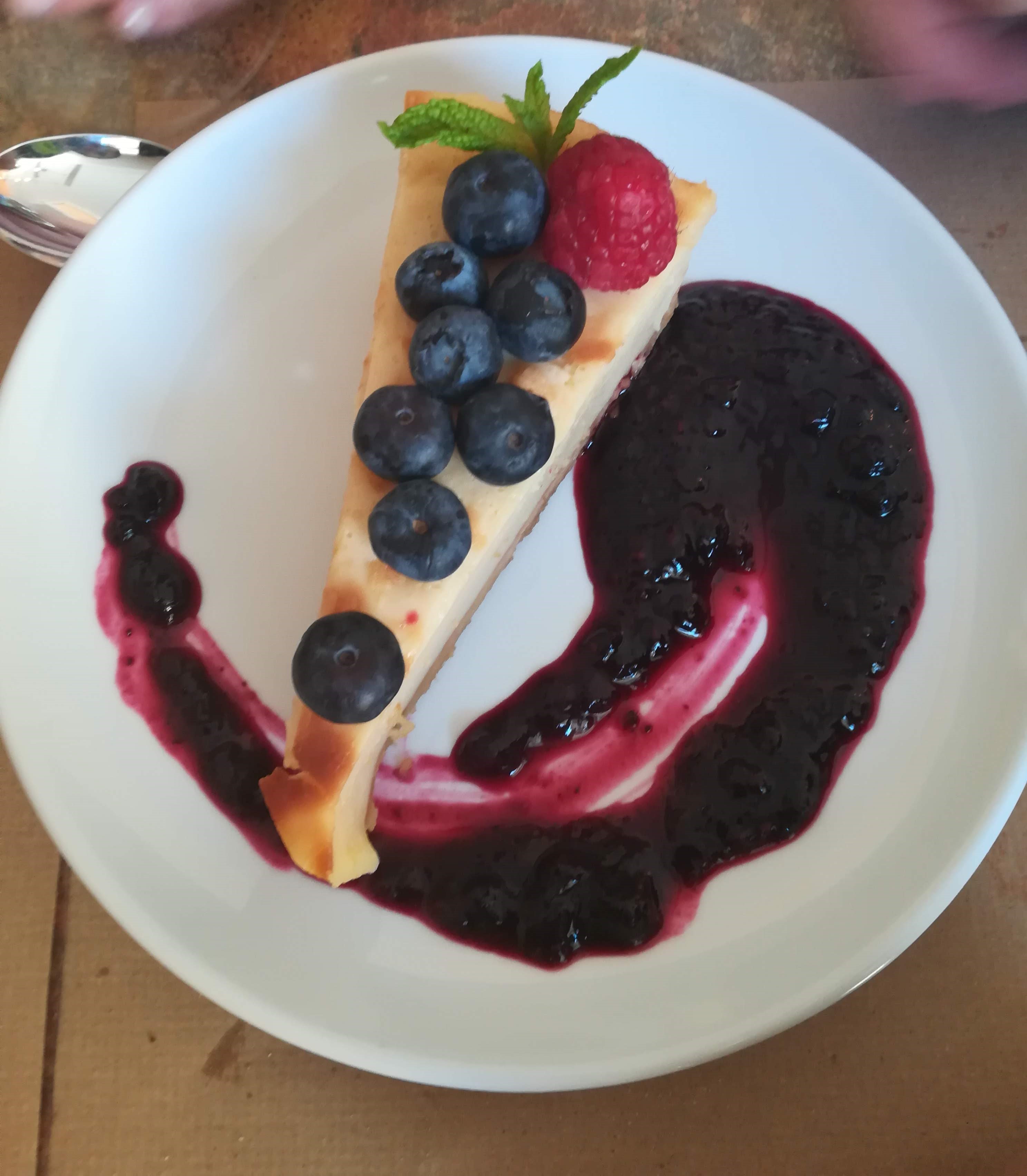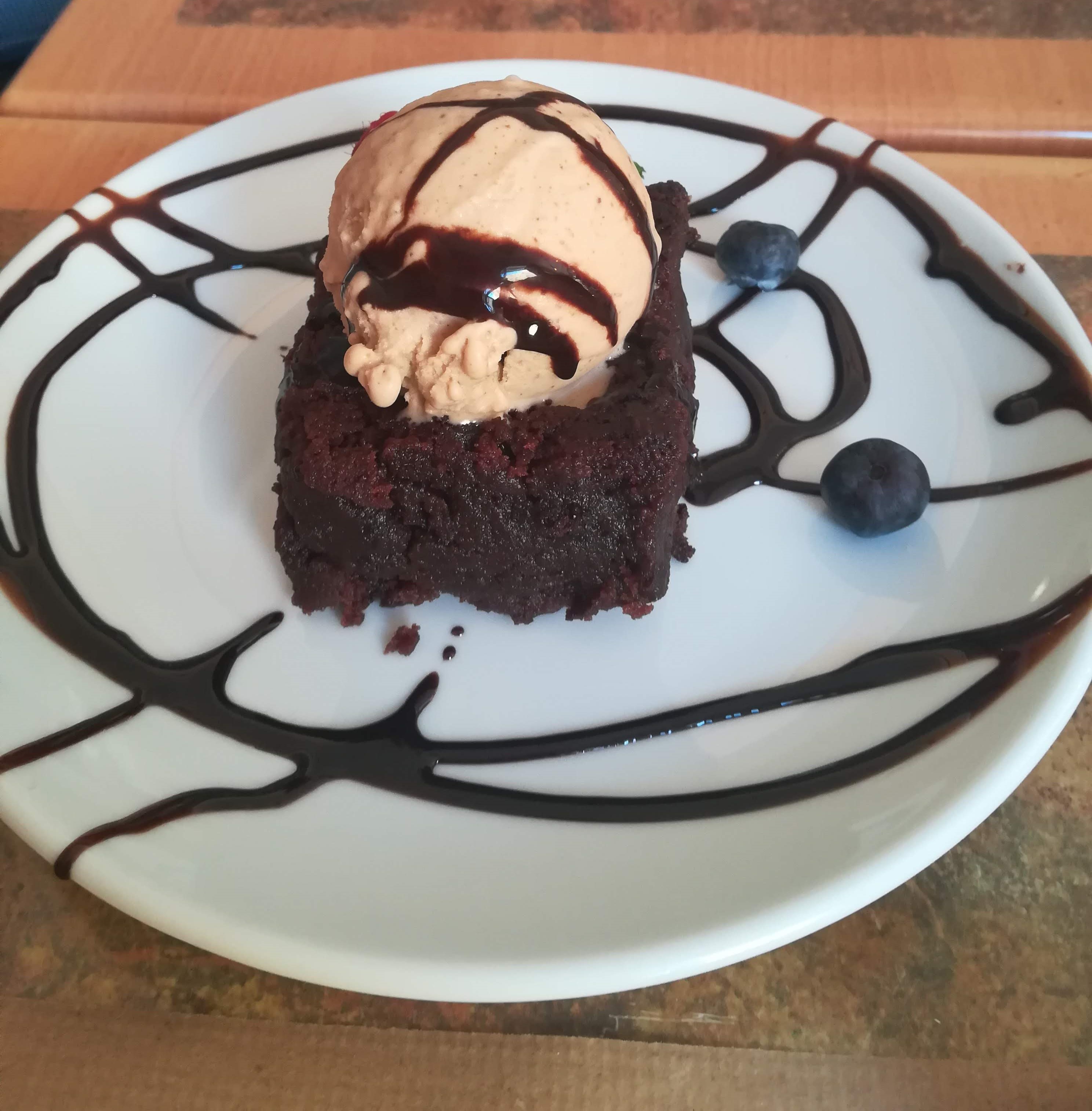 We couldn’t decide which dessert to try so we ordered 3! The cheesecake with blueberry jam, the vegbrownie with almond ice-cream and the vegamisú. Everyone loved the vegamisú the best.