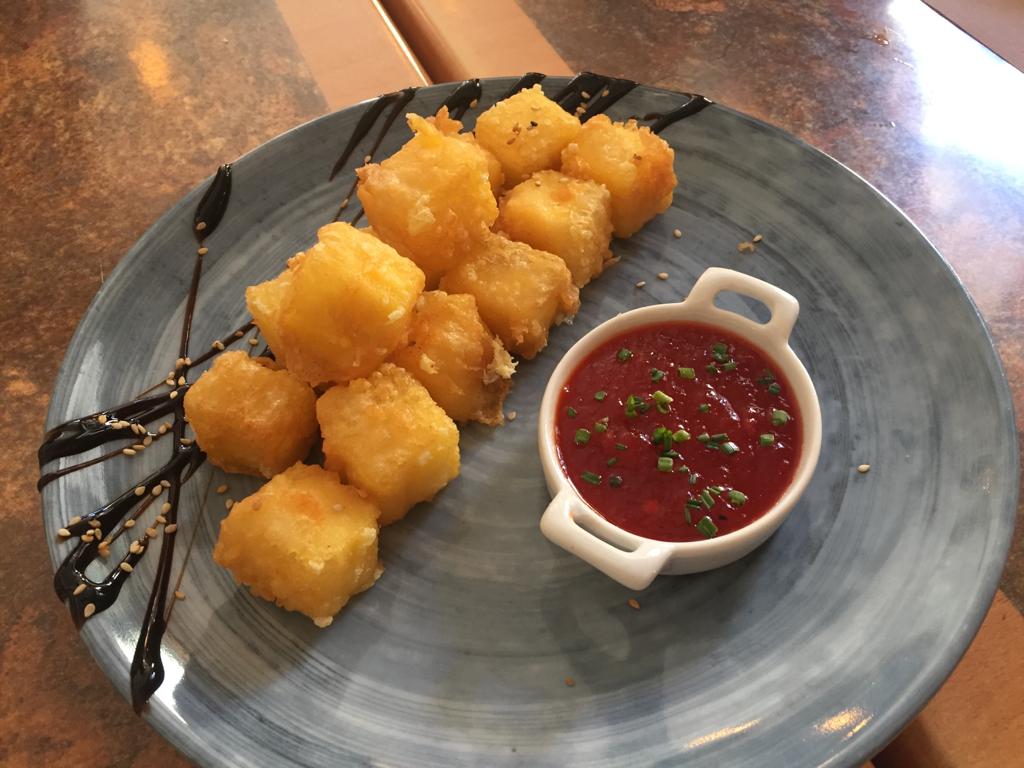 We ordered a lot of things so we could try as much as possible from the menu. For starters we had the grilled melazane, the cheese bites with piquillo pepper jam and the no-chicken Moroccan cake. Everything was amazing, especially the no-chicken Moroccan cake. Even my non-vegan family really liked it!