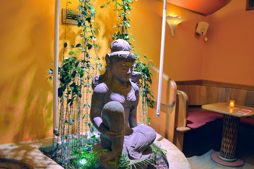 The instant that its hungry eaters step foot into MAITREA, our atmosphere abruptly morphs from busy street sounds to a peaceful hush. Every detail of the interior, from the cozy wooden floors to the lush green houseplants to the old-style Buddhist figurines, are chosen with the utmost consideration for a Zen eating experience. The building’s old-style European architecture has been renovated to encompass mobile indoor fountains and a fireplace positioned intentionally, guided by the principles of feng shui. Guests can retreat to their favorite of the many aesthetically-pleasing corners of the restaurant’s 90-seat floor plan.