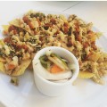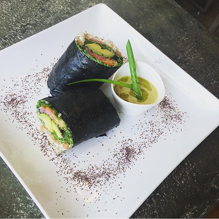 The Sea Wrap is “tuna” made with sunflower seeds, avocado and tomato wrapped in seaweed with a wasabi dipping sauce. The rich bursts of flavor and textures in this wrap will have you craving it again and again (unless you decide to go for the equally addictive Vietnamese rolls with peanut sauce for some variety).