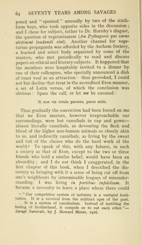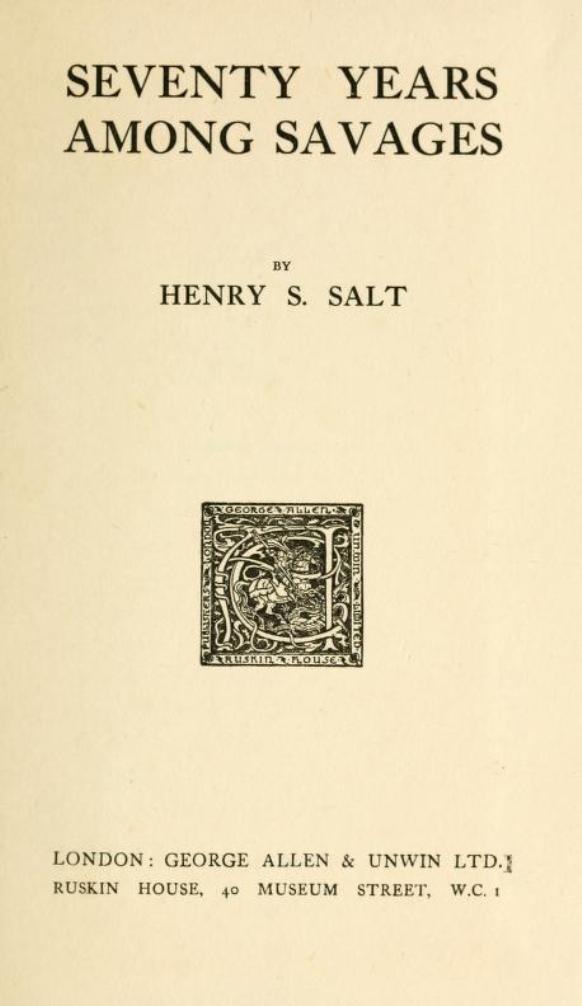 – writing in his autobiography – Seventy Years Among Savages by Henry S. Salt. Published 1921 by Allen & Unwin, London.
