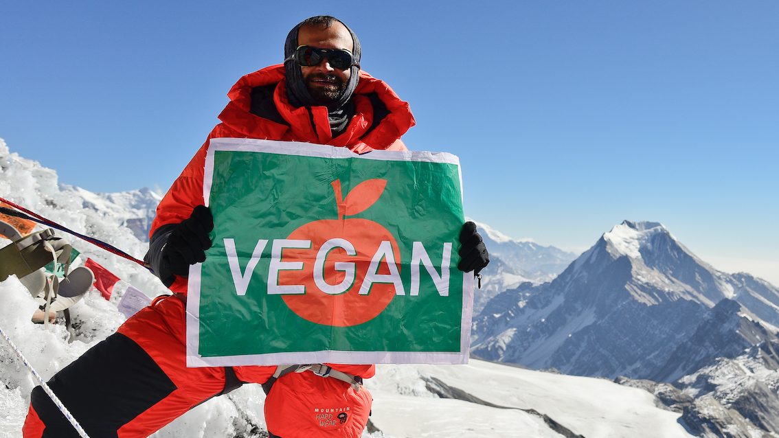 “On a pivotal evening in October 2010, I stood mesmerised and spellbound witnessing a magical sunset over Mt. Everest! At that moment, I promised myself that I would come back one day and stand on the top of the world – literally. However, when the news spread in the mountaineering community about my expedition to Everest as a Vegan, there was a lot of skepticism and push-back from the community. A typical extreme climbing expedition diet generally includes salami, spam, cheese, processed meats, eggs, and dairy. For me this wasn’t acceptable. But I told myself that I will climb Everest as a vegan or not climb it at all.”