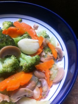 2. Steam the broccoli florets and carrot until tender-crisp. Set aside.