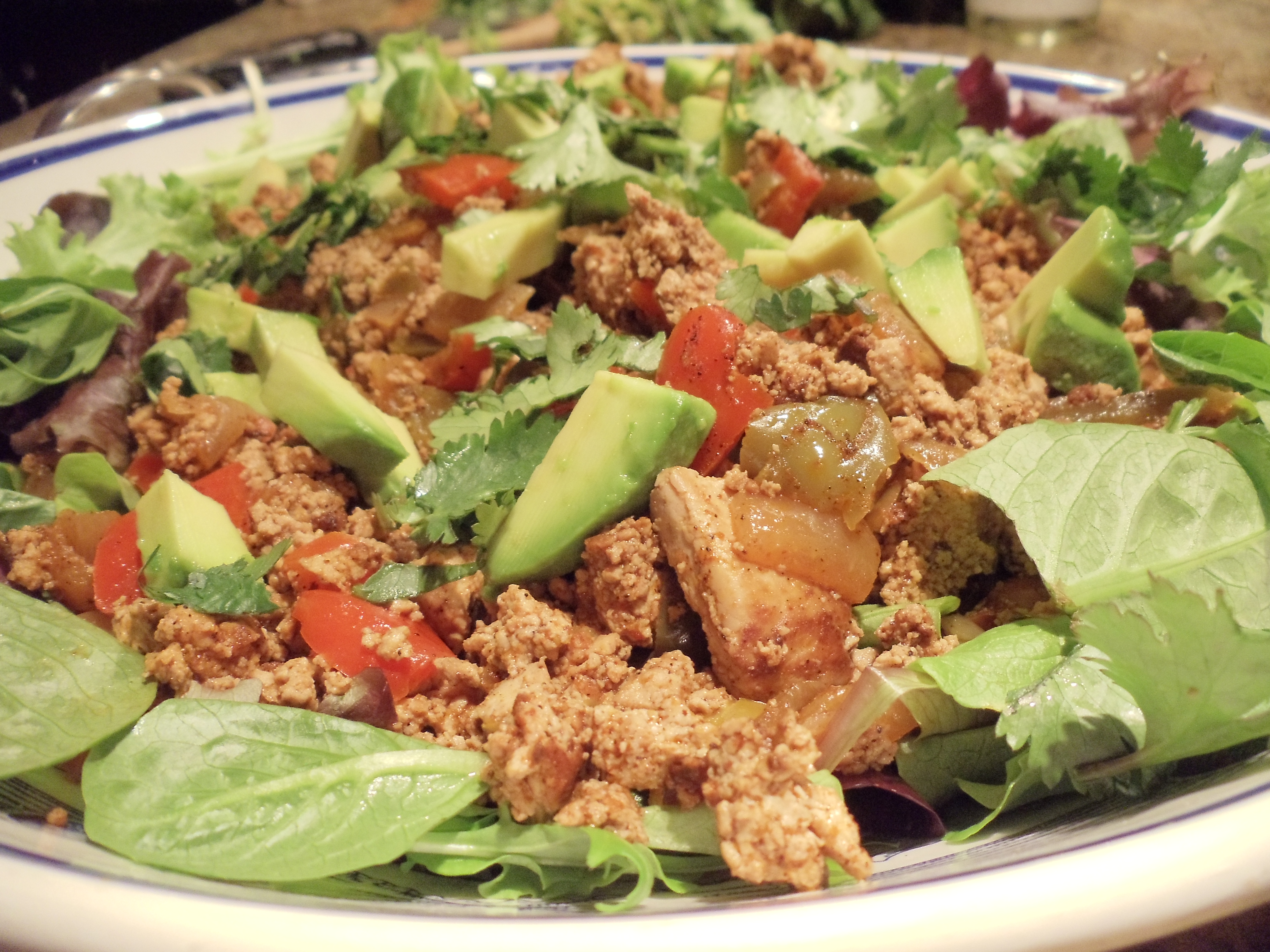 Having a Superbowl party this year? Try out these Superbowl Sofritos. This recipe will feed about four hungry people as a main meal, or lots more as an appetizer. You can easily double or triple the recipe, and you can decide how you want to serve it…either more as a meal, or as something for your guests to nibble on. If you want to serve it as an appetizer, use big corn tortilla chips to scoop up the Sofritos. You could also use Romaine lettuce leaves, warm corn tortillas (that are on the smaller side), or taco shells. If you want to use it more as a main dish, serve it inside of a sprouted tortilla, or over rice. Now the fun part is deciding what you want to top your Sofritos with. You are only limited by what you like! Some suggestions are corn salsa, chopped avocado, sliced olives, sauteed mushrooms, cilantro, and for crunch…some chopped up Romaine lettuce. I like to top mine with avocado and cilantro. Don’t forget to include some Vegan Garlic Aioli as the finisher!