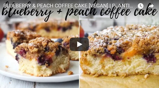 Plantifully Based has a new recipe out for an amazing looking blueberry and peach coffee cake…and we can’t wait to try it! She explains that different fruits can be switched out for the blueberries and peaches as well, so if you prefer strawberries, blackberries or something else, go for it! This cake is surprisingly easy to make, and will convert all your non-vegan friends instantly when they see how delicious…