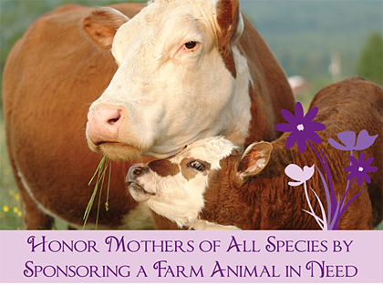 We just received this press release we would like to share with you… This Mother’s Day, Farm Sanctuary Encourages Public to Honor Mothers of All Species Nation’s Leading Farm Animal Protection Organization Offers Opportunity to Sponsor an Orphaned Animal or Courageous Mother in Need Watkins Glen, NY – May 5, 2010 – Last September, the heartbreaking story of Angelo, a lamb born inside a transport truck and rescued by a…
