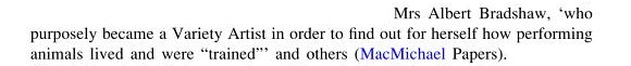 Mrs Albert Bradshaw – AKA – ‘Anne M. Tree’ – an almost forgotten AR pioneer. ‘Anne’ was also remembered this year on p31 & p56 of the truly superb new book – The Welfare of Performing Animals: A Historical Perspective – by – David A. H. Wilson – 2015.