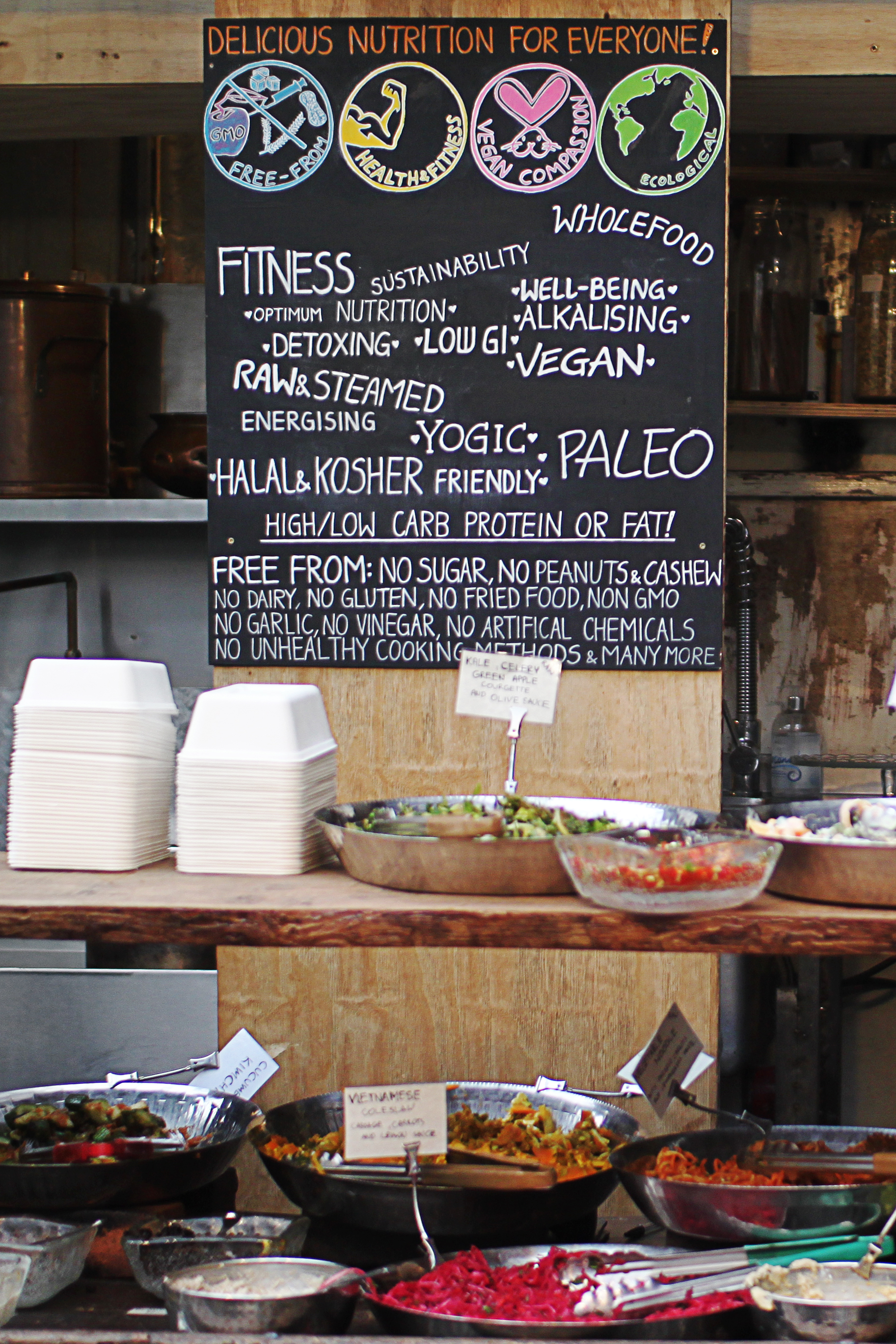 Very near the center of the city, 100 yards down the road after taking a left out of Goodge Street Station, lies some of the healthiest food in London. Vantra Eden’s fare, its sign proclaims, contains “No Dairy, No Gluten, No Sugar, No Fried Food, Non GMO, No Peanuts & Cashew, No Garlic, No Vinegar, No Artificial Chemicals, No Unhealthy Cooking Methods – Vegan, Raw & Steamed, Halal & Kosher Friendly, Detoxing, Energising”.