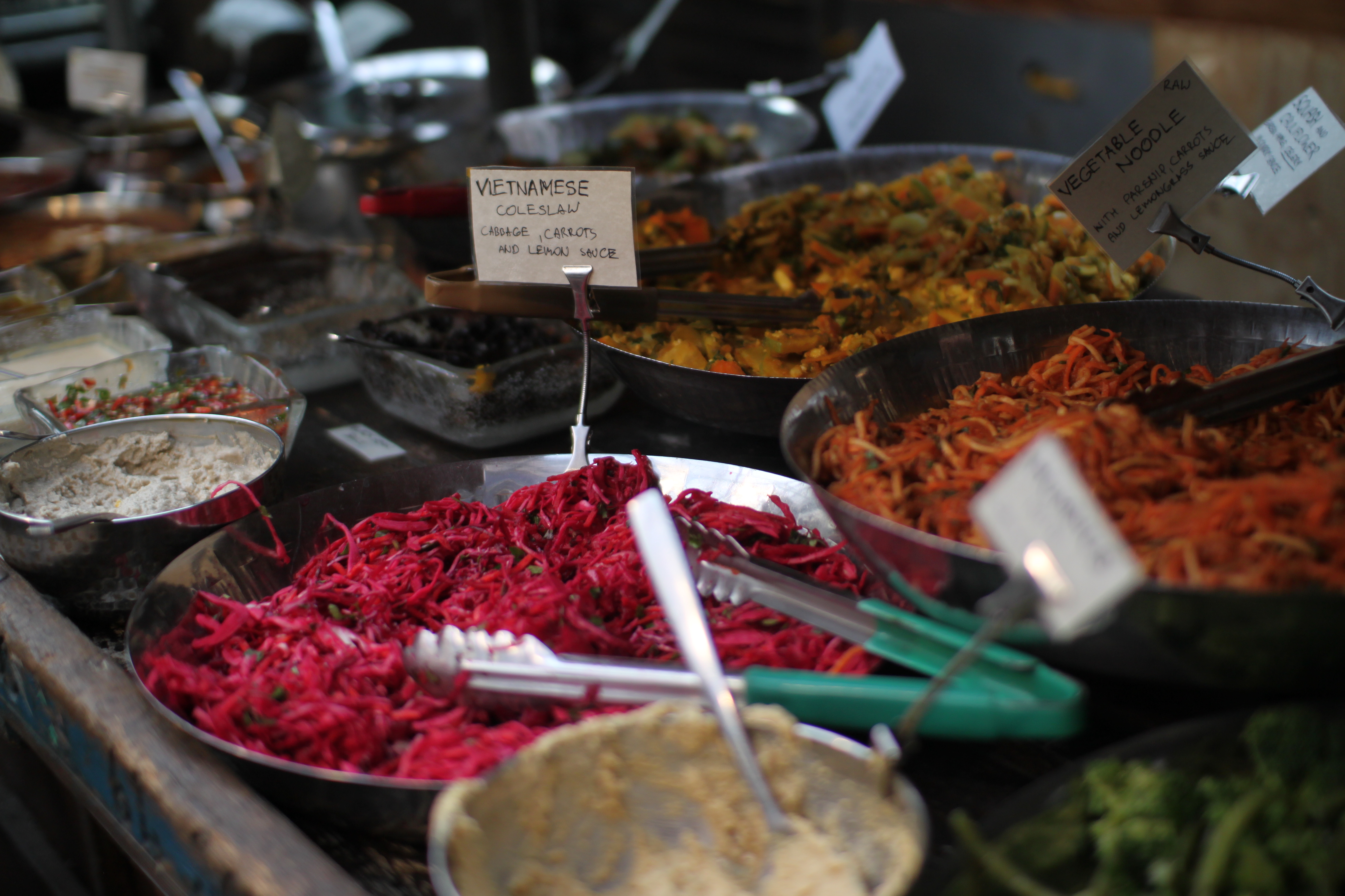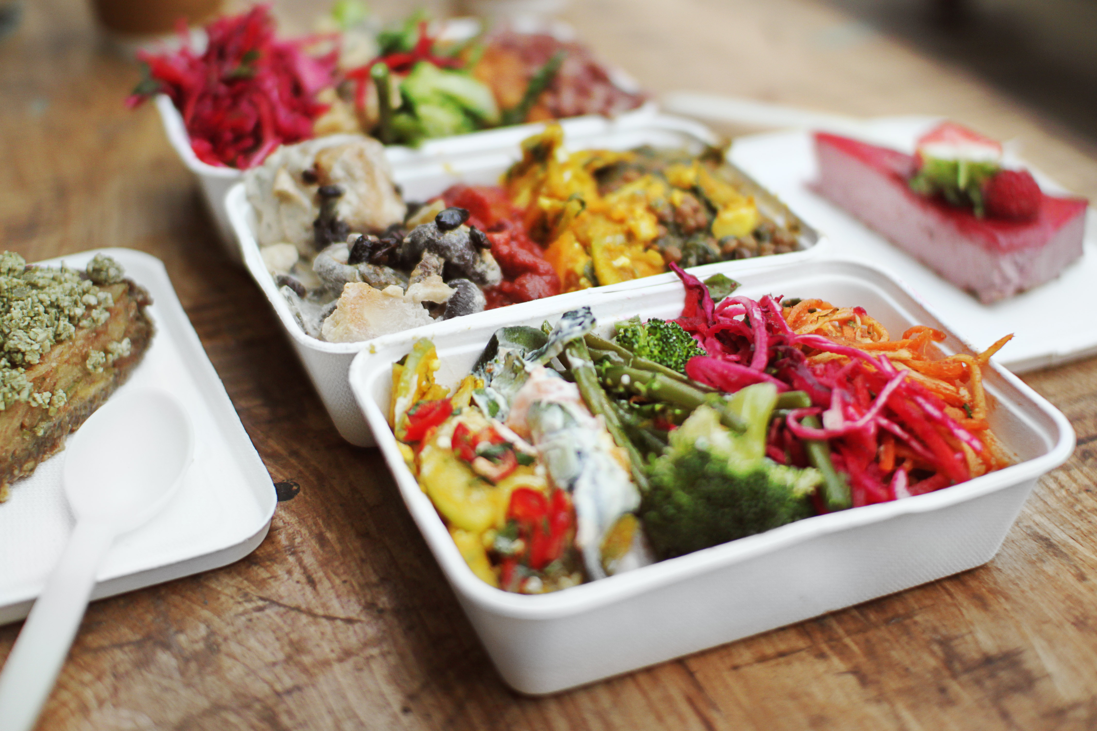 P: We get them from different cooperative, organic, ethical companies like Natural and Suma, British ethical wholesalers. We support more ethical eco companies to grow. Our disposables – straws, cups, takeaway boxes – are all biodegradable. It costs us more but it’s about being moral. Not just about ourselves and profit. It’s not just about yourself, it’s about the whole big picture. So when we don’t fry our food, we’re not wasting oil. We’re not wasting anything here. If we juice, we use the pulp in something else. For almond milk we use the pulp for biscuits or a base for other things. Nothing is wasted. Of course some things we have to cut, but then we compost it, it goes back to nature. And with not using oil utensils don’t become greasy and sticky so we don’t have to use a lot of washing-up liquid and waste more. It’s all about harmony. Cause and effect.