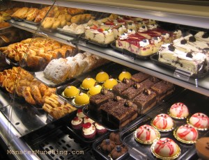 Walk, drive, run, or bike past a bakery and the aroma of something sweet and freshly baked is looming in the air that will cause a sudden turn into the parking lot. Once lured in through the door, the smells are intense, with a combination of decadent chocolates, breads, and sweet fruits that enter the nose activating the dopamine in the pleasure center of the brain, down to the tips of the toes. There are brightly lit glass cases with trays of flakey pastries drizzled in white glaze frosting and sticky apples, blueberry, strawberry or lemon fruit preserves are oozing out of the tops and sides. Next to them are chocolate, vanilla, or lemon cupcakes with colored frosting spiraled up in a perfect twist and topped with nuts or coconut. In another case are perfectly round cookies big enough for two in varieties like chocolate chip, peanut butter, glistening sugar, and sweet jelly. Next to those are blueberry, carrot, bran, corn, and banana muffins the size of a softball in neat rows, pies with flakey golden crusts filled with apples and cinnamon, cakes that have a slice cut out so the 4 layers with frosting in between each one can be seen and stared at in a mouthwatering awe. Then, a worker comes out from the back to place the still-warm freshly baked breads on shelves next to the Italian, artisan, sour dough, Kalamata olive, French, and whole grains breads.