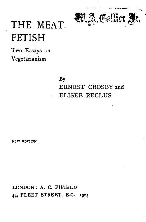 Ernest H. Crosby in his essay –‘The Meat Fetish’ – read it online – here.