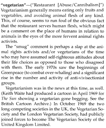‘Non-Brits’ born after 1960 may have difficulty fully comprehending this video. I fondly remember seeing it when it was first aired in 1970 – I was aged 9. This is vegetarian history of the silliest type. It is very far indeed from being PC etc….