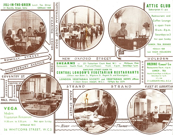 Time travel – back 68 years to Vegetarian Central London 1947. These 5 restaurant businesses had all survived WW2. Kudos to all of the owners & their teams!