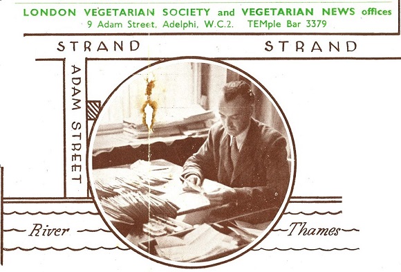 The magazine of the London Vegetarian Society – then at 9 Adam St. The original offices at 6 Duke St. had been destroyed in the London Blitz, on October 10th 1940.