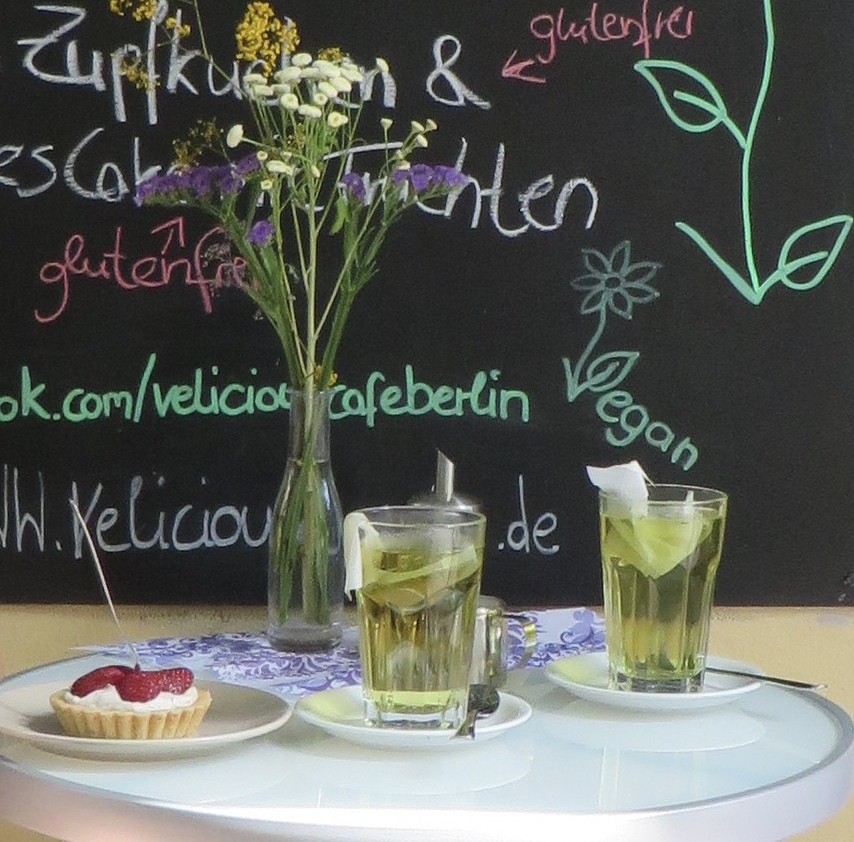 In the hustle and bustle of Friedrichshain, a neighbourhood in former East-Berlin where everything is hip & happening, you will find a little gem called Velicious. It’s a cute, tiny, all vegan (and gluten-free), café with a very nice ambiance.