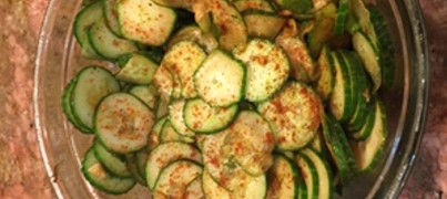 Add the soy sauce, sesame oil, chili powder, and white vinegar to the cucumber mixture.