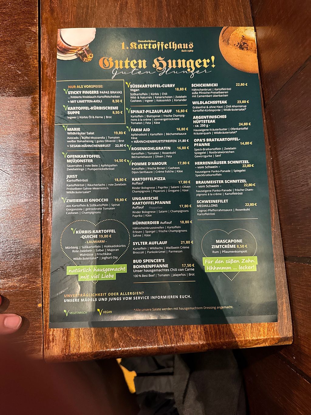 I ate at Kartoffelhaus in late October 2021 and unfortunately they only offered one vegan option, a sweet potato curry. It tasted nice though. Quite a few vegetarian options available.