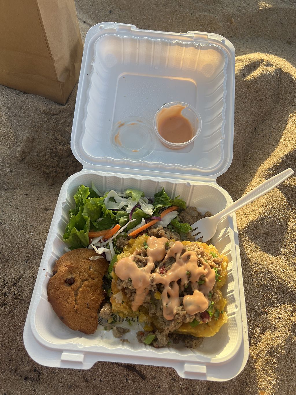 Best Puerto Rican food I’ve ever had. The mixed hp was to die for. The beans so flavorful and the vegan chicken was so scrumptious. Everything was good highly recommend! I will be back😄and the chocolate chip cookie omg!