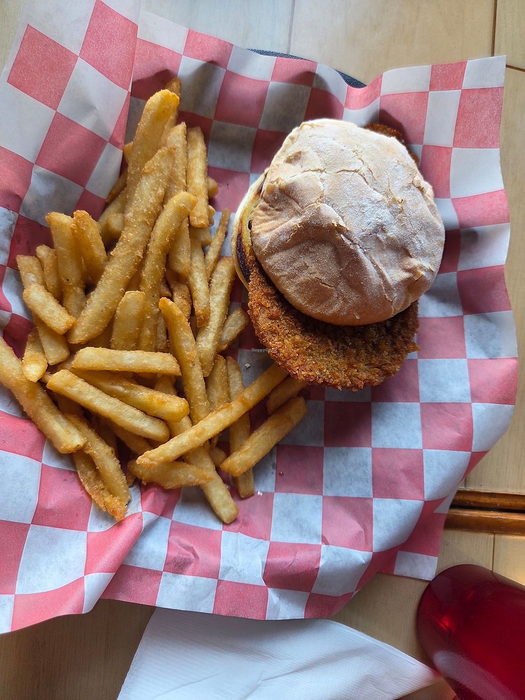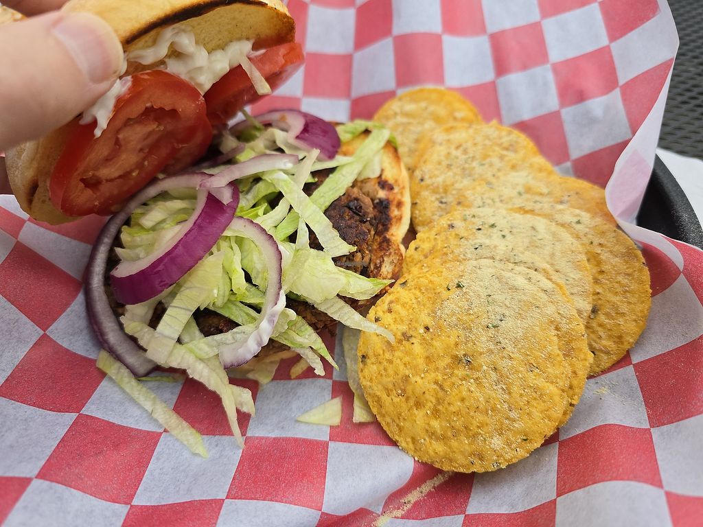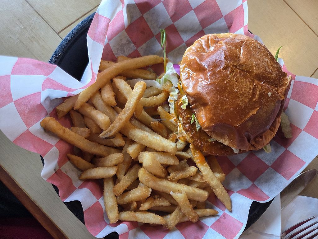 Chili cheese fries (full), and seitan wings with thai bbq (comes with …