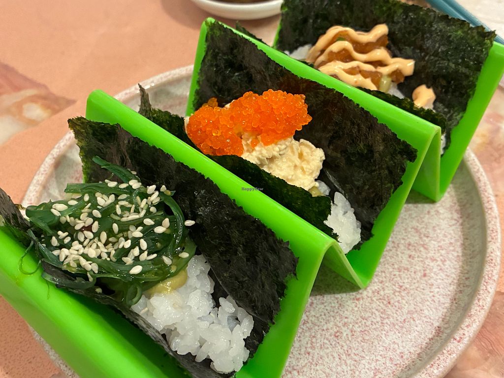 Sea Tacos: Wakame & sesame, Tofu-crab & red kelp caviar, VTuna & coria…