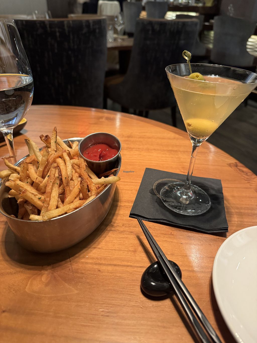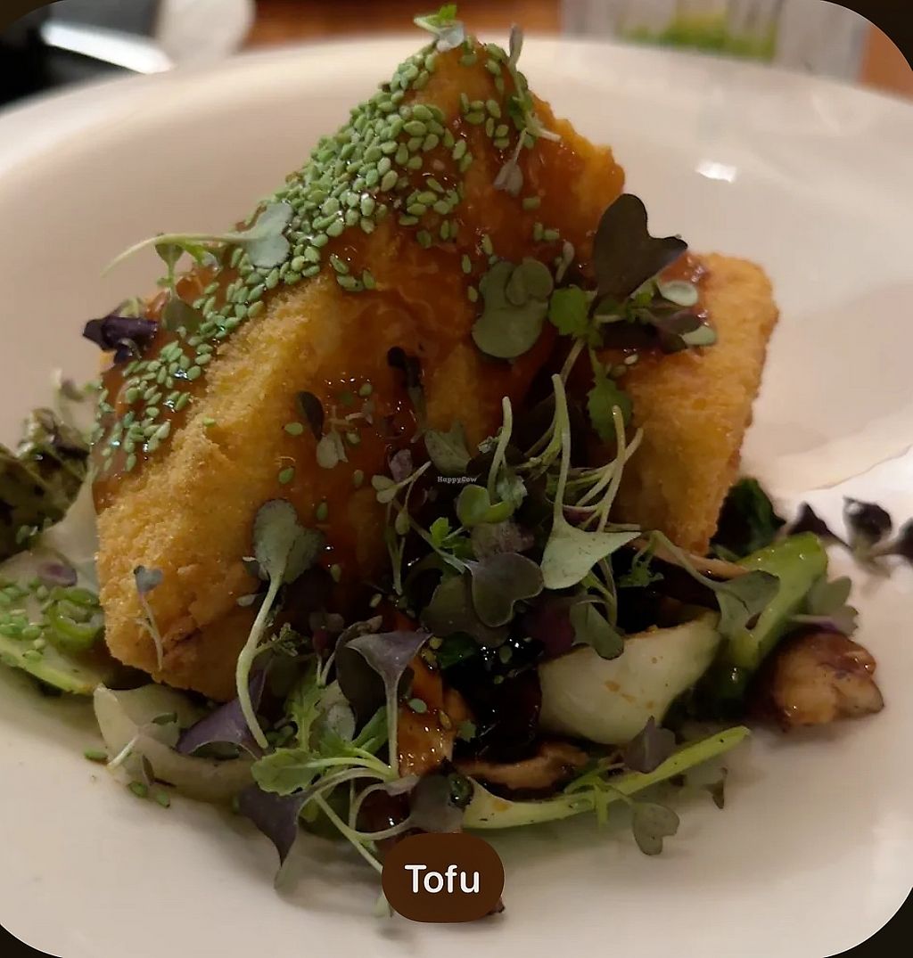Serves meat, vegan options available. Upscale restaurant with a heated patio. Vegan options include tofu dishes, pasta, risotto, and salads. Open Mon-Sun 4:30pm-10:00pm.