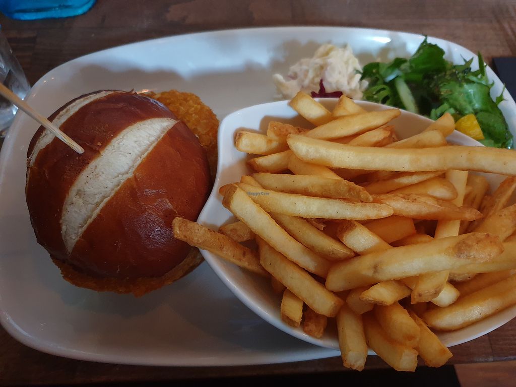 close up of the chicken burger- really crispy, nice bun but needed may…