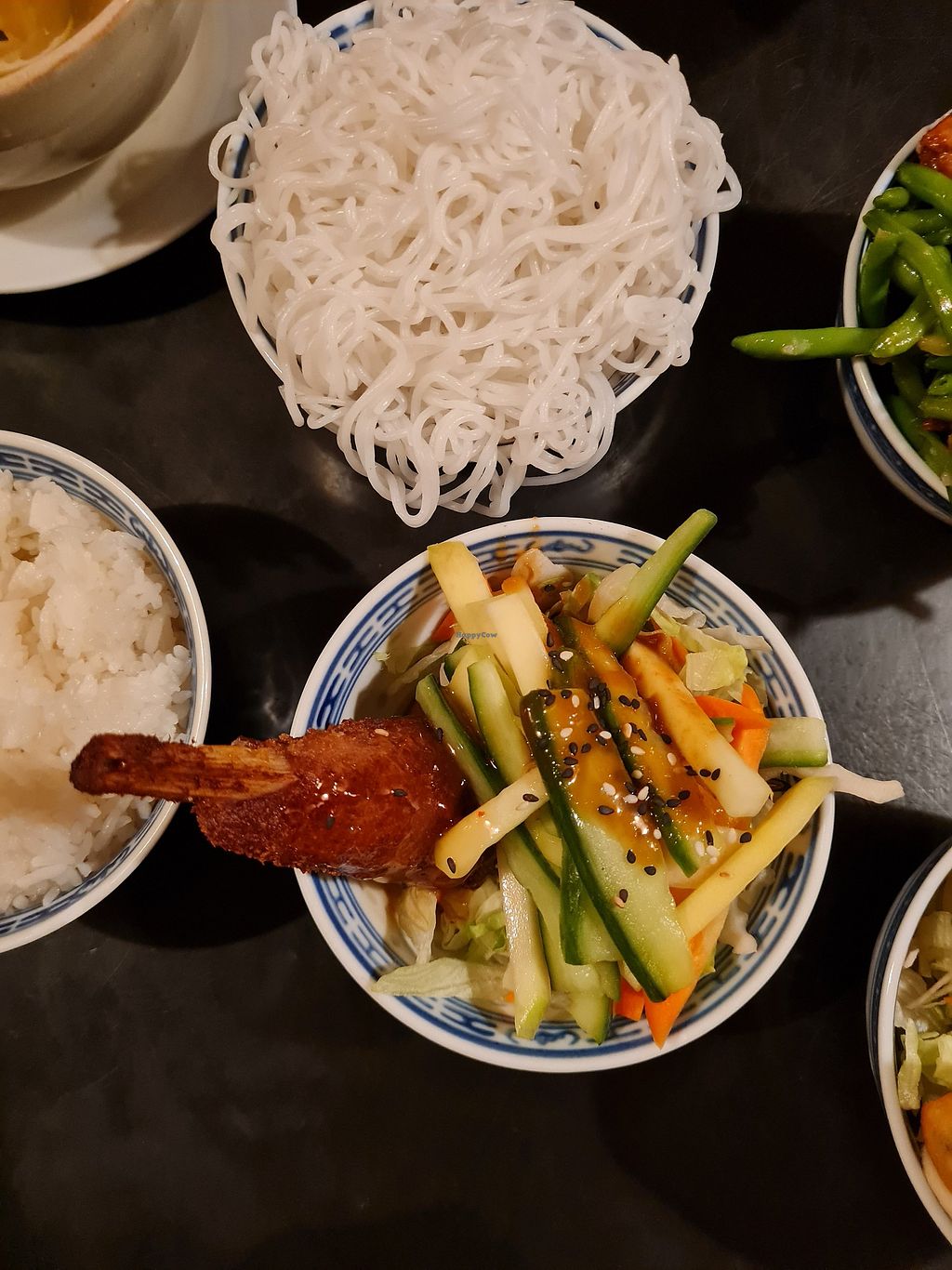 Bun Bao Taco and Com Chien (soft tofu with crispy green rice flakes)