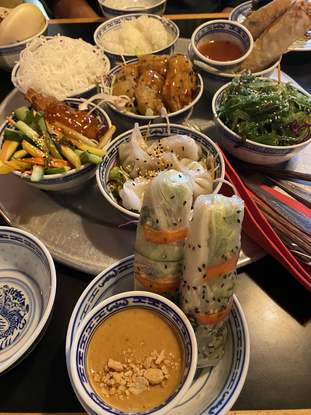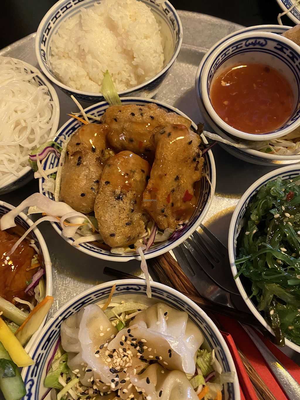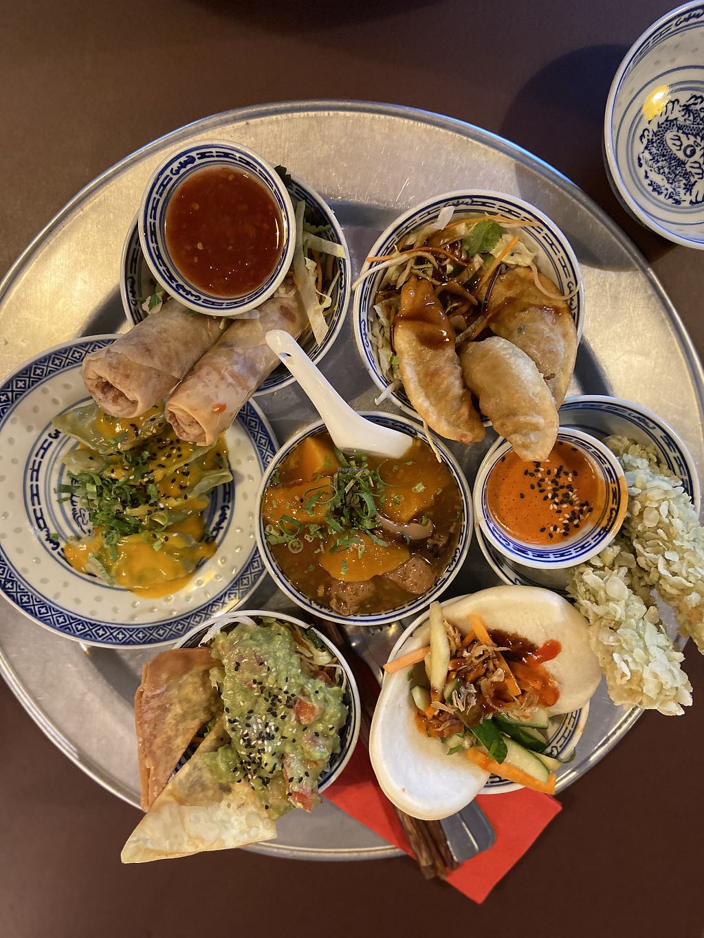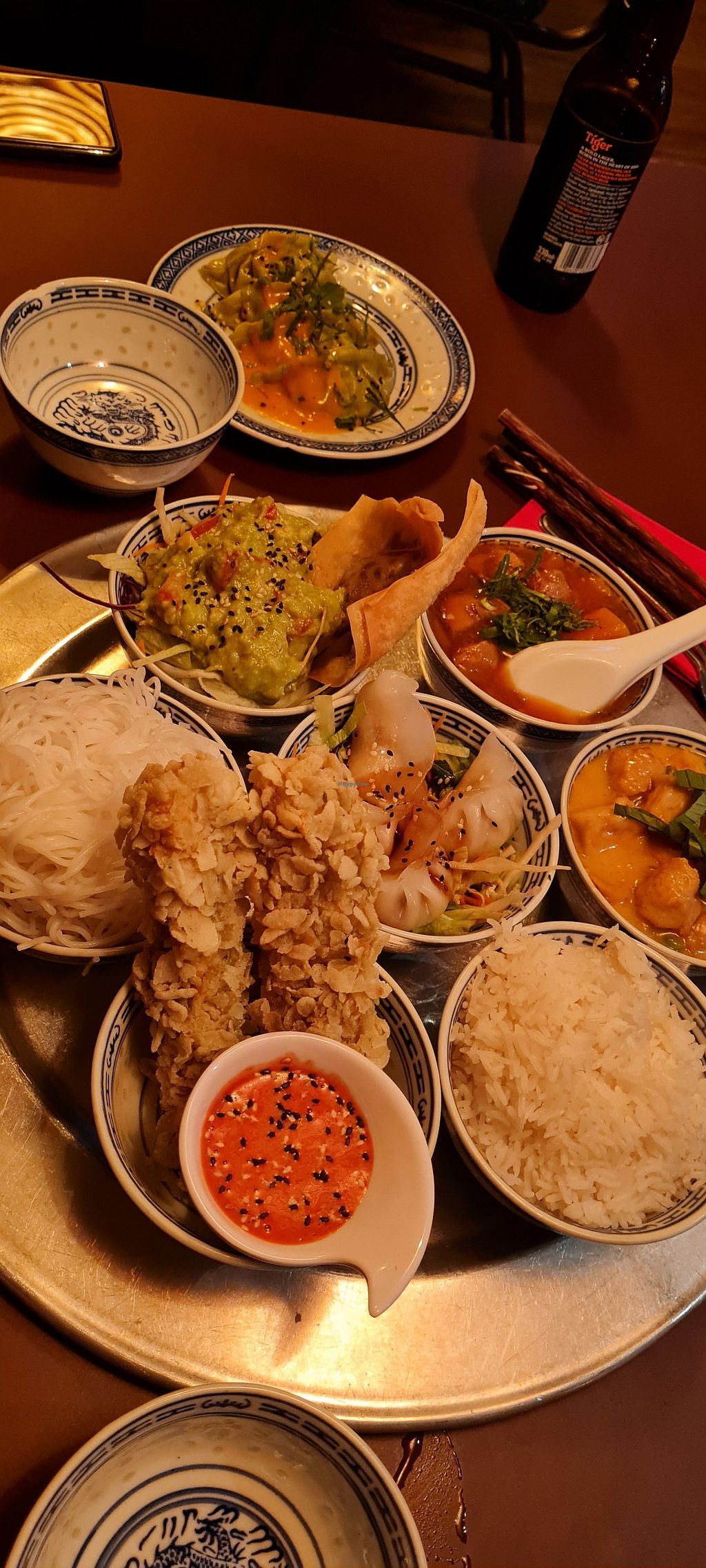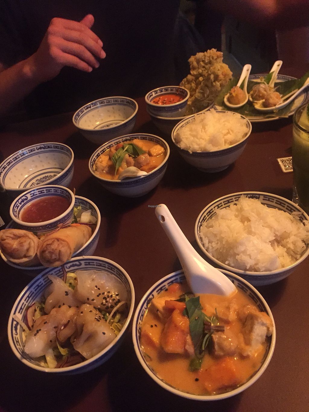 Papaya salad, guacamole & wantan, mixed vegetables and homemade tempeh