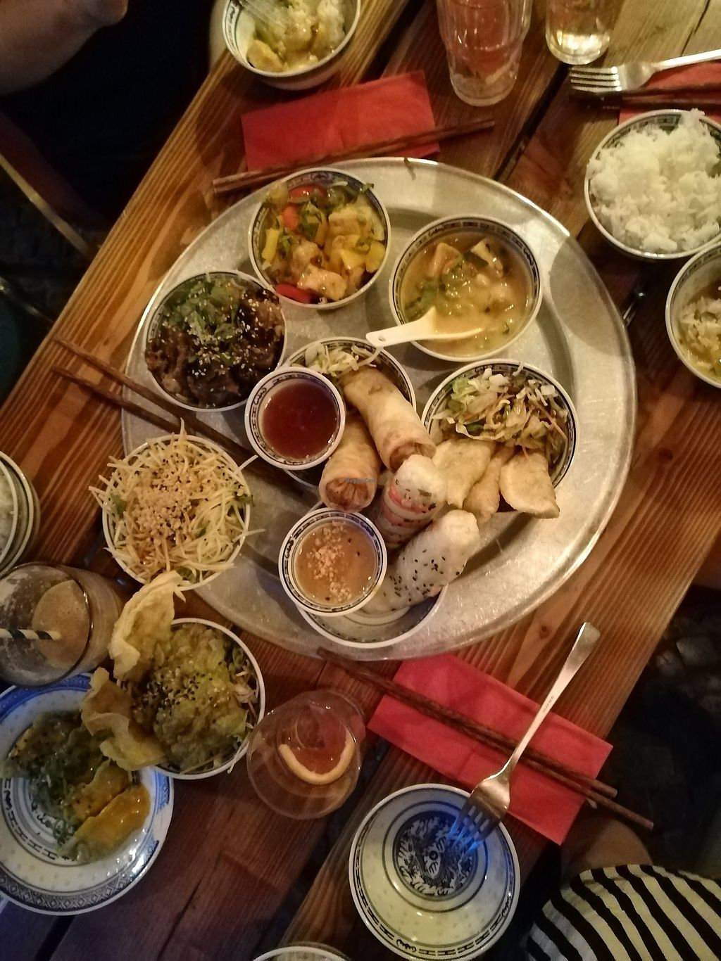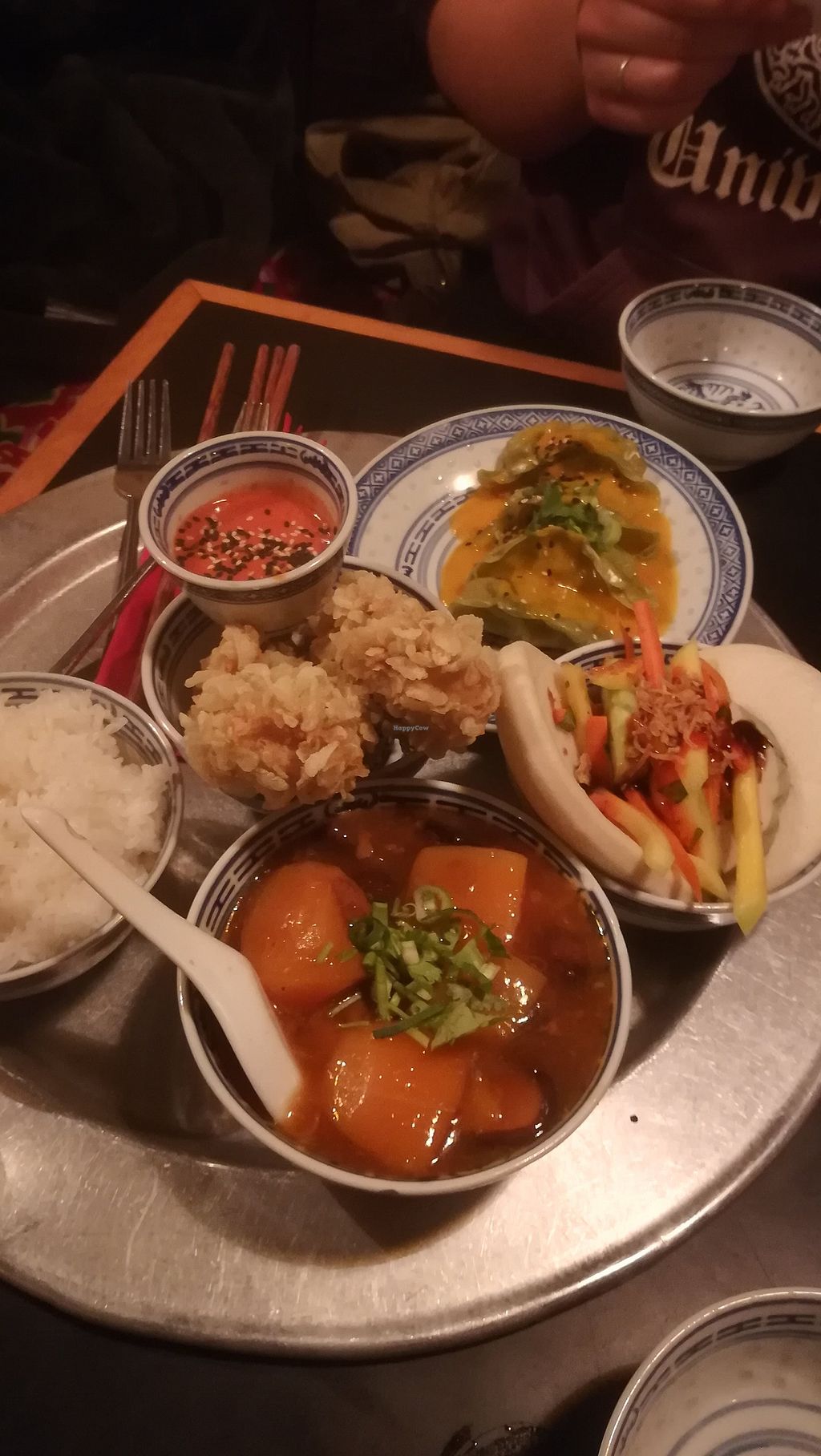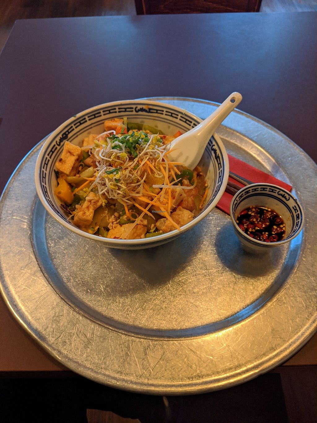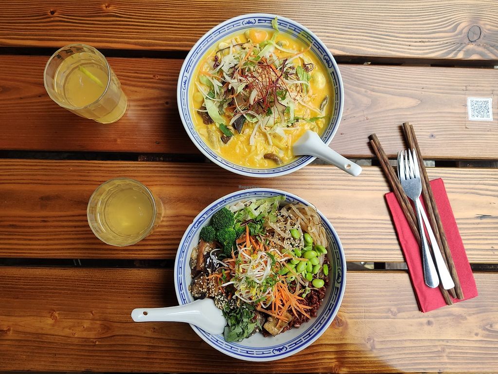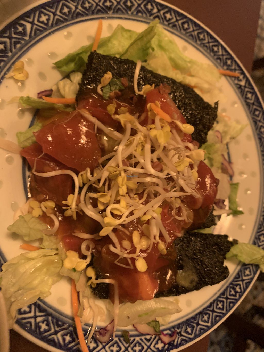 Papaya salad, guacamole & wantan, mixed vegetables and homemade tempeh