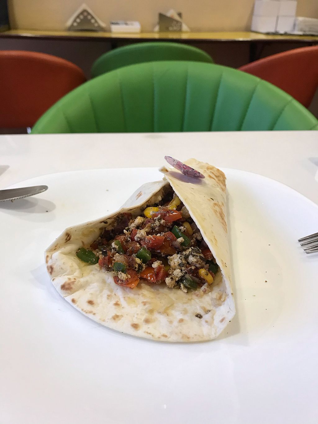 Small cafe ran by mother and daughter who are lovely and friendly. They made sure that our experience was as best as they could make it. Unfortunately I do not score my reviews on just the owners themselves. It’s all about the overall experience. I can start off by saying yes it is very vegan friendly and owners are very aware of veganism as they told us they were trying to be vegans. However for a family to dine in and with other customers in front of que this is not the place to be if you want your food served to you in a decent amount of time. I understand there’s only two people and only one cooking but that doesn’t mean as customers we have to wait over an hour to eventually get all meals. Dishes are cooked one by one so if your a big group this is a miss if you want to eat all at the same time. As a foodie I eat out a lot and find it a hobby for vegan finds, so standards with me are pretty high so unfortunately the food was only fair. I do appreciate the attempt of the vegan Mac and cheese as I have not seen this is India yet however I have my own recipe and this cafes attempted dish compared to mine was bland and not even seasoned with salt and pepper. We also ordered the vegan burrito I don’t have to say much just check my picture, let’s just say it did not look like a burrito at all. It was pretty much a average tofu scramble inside a folded tortilla wrap. Overall owners welcoming and friendly. Food fair, average and over priced. Wait time ridiculous. They need an extra cook and guessing they need a proper routine when it comes to prep. The daughter the cook has potential in her cooking just needs to expand her knowledge with flavours of the vegan cuisine or even someone to show her the tricks and tips of delicious vegan cooking.