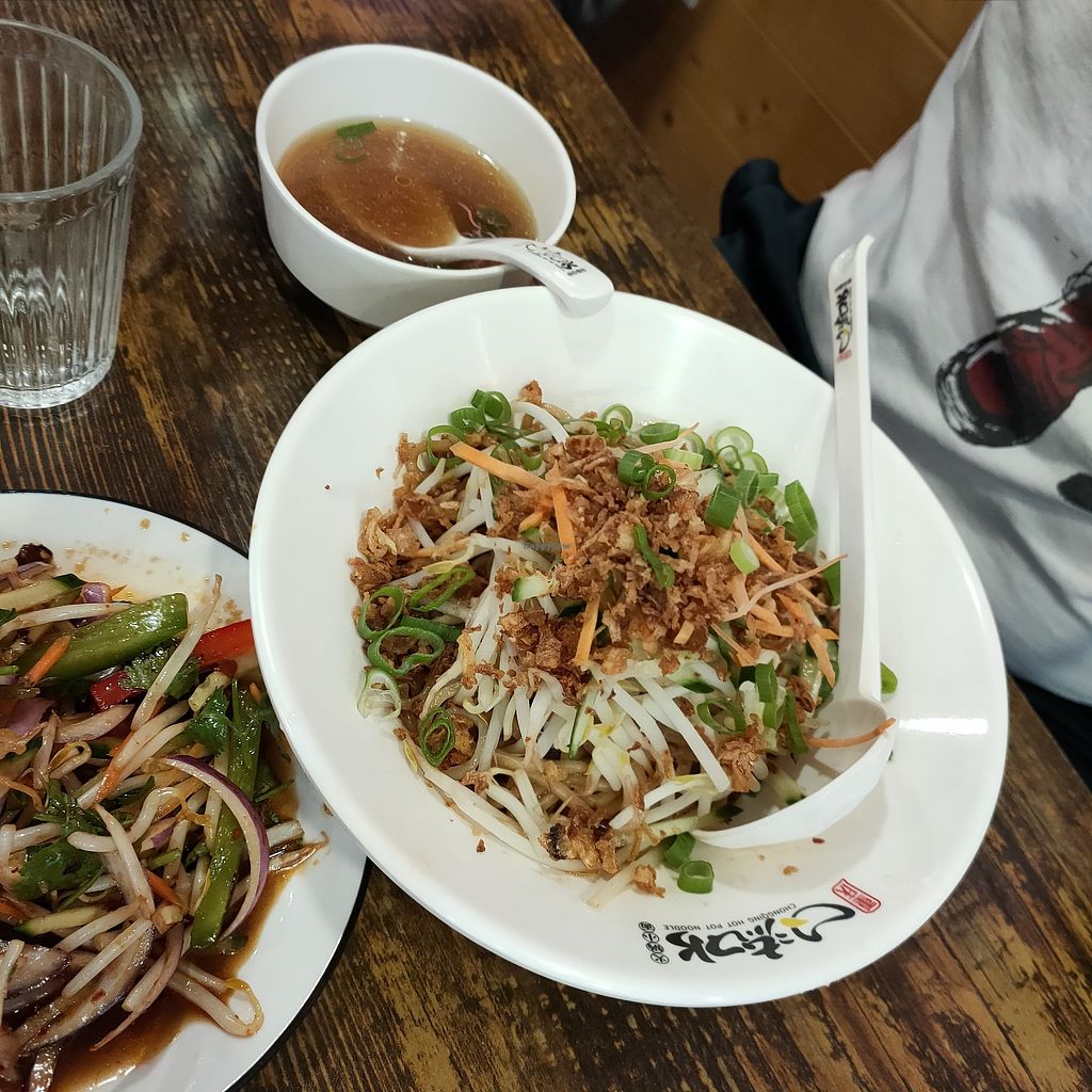 Serves meat, vegan options available. Small Chinese restaurant with vegan salads and noodle dishes, Tomato noodle soup, noodle soup with pickles, salad Open Mon 12:00-23:00, Tue-Thu 18:00-23:00, Fri 12:00-03:00, Sat 18:00-23:00, Sun 12:00-23:00. Please check with Google.